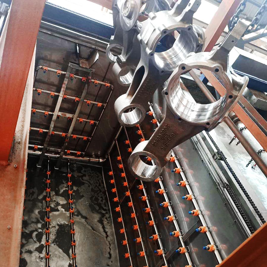 The equipment has automatic loading and unloading and corner system, ultrasonic cleaning system, automatic throwing, automatic overflow and oil separation device, spray system, automatic high-pressure water cutting system, and automatic drying system. The robot automatic conveying system uses high-precision linear guide rails with high-precision position detection sensors, and the robot can accurately grasp and place the workpiece. The automatic feeding and discharging and automatic heating system completely realizes unmanned intervention and automatic operation, which greatly reduces the labor intensity of workers. The advanced mist treatment system can condense and return the mist generated during cleaning, and the air will be discharged after being filtered and adsorbed by activated carbon.