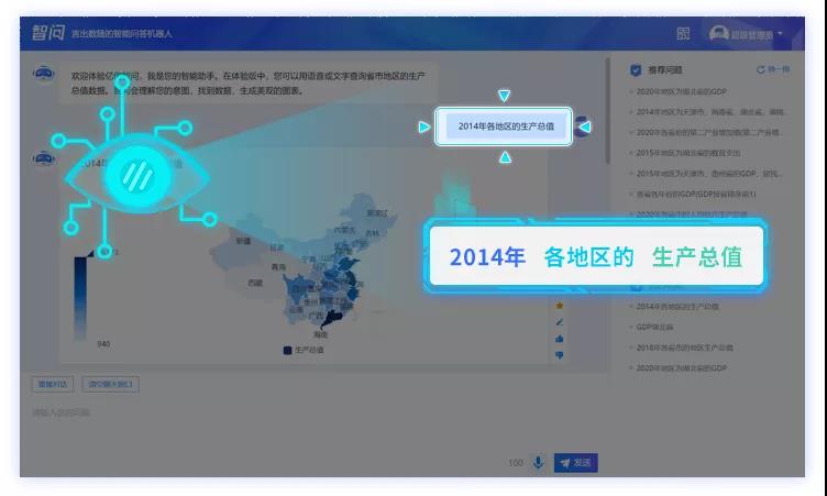 此次智問3.0在展現形態及交互方式上做了重大升級,由原來2.0版本一問一答式的搜索框式交互,轉變為人機聊天式的交互方式,用戶可以通過輸入文字或通過語音進行提問 ,快速獲得正確的分析結果,極大降低用戶的數據分析門檻,徹底變革傳統BI的數據分析方式。