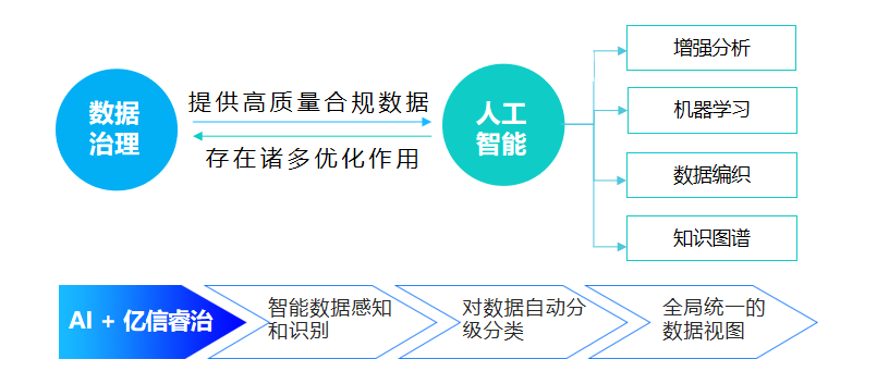 進(jìn)入21世紀(jì)20年代,人工智能經(jīng)過20余年的蓬勃發(fā)展,迎來爆發(fā)式增長(zhǎng)的新高潮。億信華辰一直進(jìn)行智能化技術(shù)的探索,幫助提升數(shù)據(jù)分析與數(shù)據(jù)治理效率,解放人工。億信ABI作為全新一代智能數(shù)據(jù)處理分析平臺(tái),分階段有步驟的實(shí)施AI布局,通過程序自動(dòng)化、ML機(jī)器學(xué)習(xí)和深度學(xué)習(xí)等大數(shù)據(jù)能力,規(guī)劃了智問、智讀、智算三步遞進(jìn)策略,打造出一個(gè)會(huì)思考、能說話、有決策的BI系統(tǒng),助力走向ABI的最佳實(shí)踐。在數(shù)據(jù)治理方面,睿治數(shù)據(jù)治理平臺(tái)不斷融合AI新技術(shù),力求通過智能化管理來簡(jiǎn)化數(shù)據(jù)治理實(shí)施過程,目前可實(shí)現(xiàn)“智規(guī)”、“智檢”、“智盤”、“智問”。