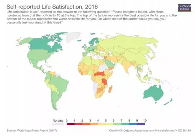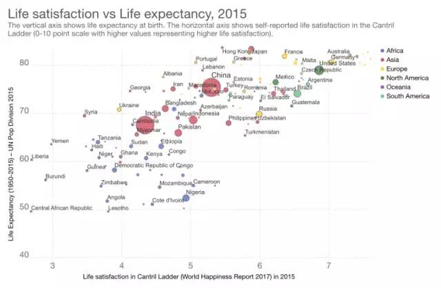 即使數據可視化使用比例模型,也可以在每個步驟之間使用足夠的顏色對比度。當用戶將鼠標懸停在每個國家/地區時,則顯示相應的標簽。(來源:我們的數據世界)